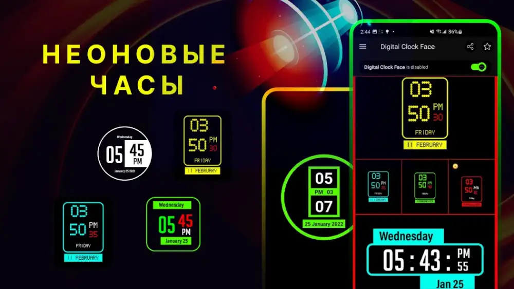Скачать приложение Цифровые часы на экран на Андроид бесплатно и без регистрации можно с нашего сайта, по ссылке ниже.