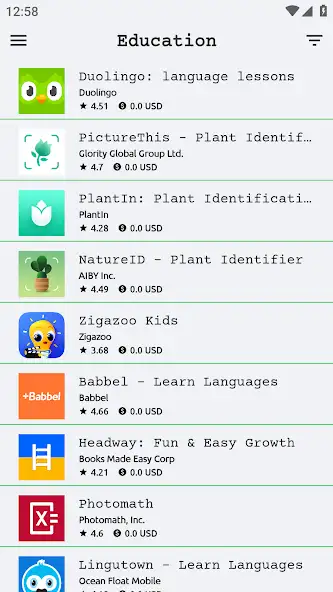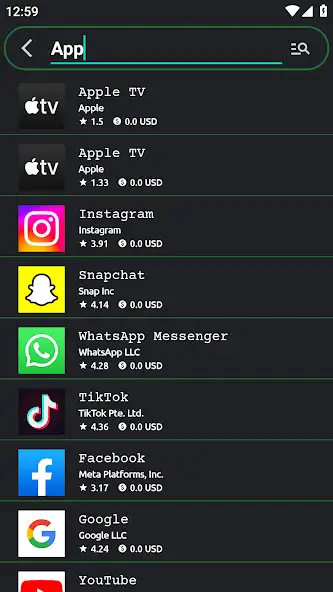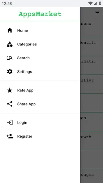 AppsMarket — каталог приложений с функцией поиска контента для загрузки. Есть фильтрация по категориям: «Бизнес», «Красота», «Образование», «Развлечения», «Финансы», «События», другим. Содержание каталога показывается списком с миниатюрами, названиями, рейтингами. Доступен просмотр информации о программах: описаний, скриншотов, отзывов и оценок пользователей. Присутствует список похожего контента. Имеется подборка популярных приложений.