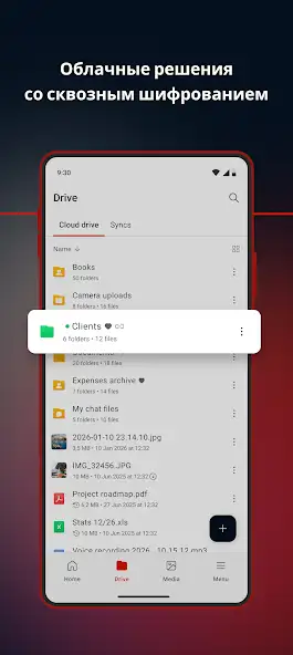 MEGA — облачное хранилище файлов, в котором используются современные методы шифрования, что предотвращает несанкционированный доступ к аккаунту пользователя Андроид. Если до этого использовалась веб-версия сервиса, можно воспользоваться синхронизацией, чтобы управлять данными напрямую с устройства. Быстрая регистрация и внушительный объем памяти выделяют приложение среди аналогов.