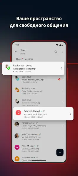 Интерфейс сделан таким образом, чтобы пользователь мог в любой момент просмотреть, кто из контактов получал доступ к сохраненным файлам, были ли скачивания. Дополнительно сохраняется и история действий по получению файлов от других пользователей.