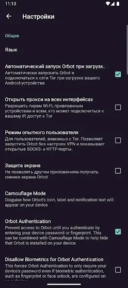 Orbot совместим со многими популярными браузерами (например: Mozilla, Opera и др.). Если один из них установлен на Андроид, то весь исходящий трафик браузера будет шифроваться.