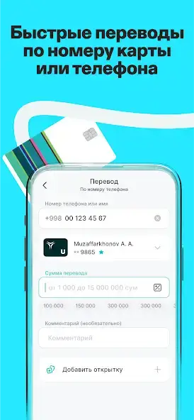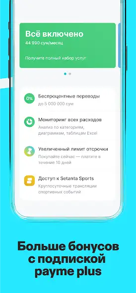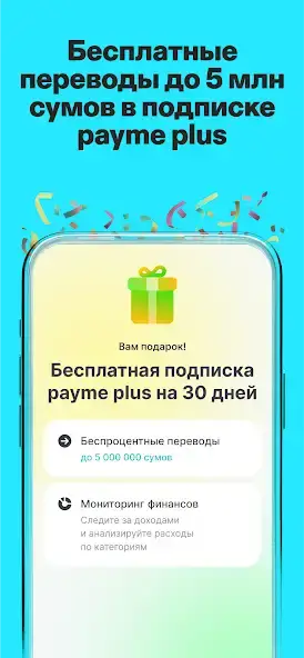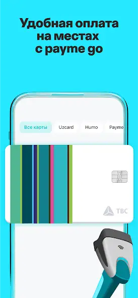 Payme – мобильный клиент узбекской платежной системы Uzcard для оплаты покупок и перевода денежных средств через смартфон, планшет. Позволяет контролировать расходы, просматривать счет электронного кошелька, пополнять баланс телефона или выполнять прочие действия. Можно выпустить международную карту VISA на имя пользователя через личный кабинет без посещения банковского отделения.