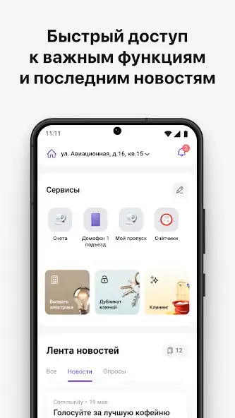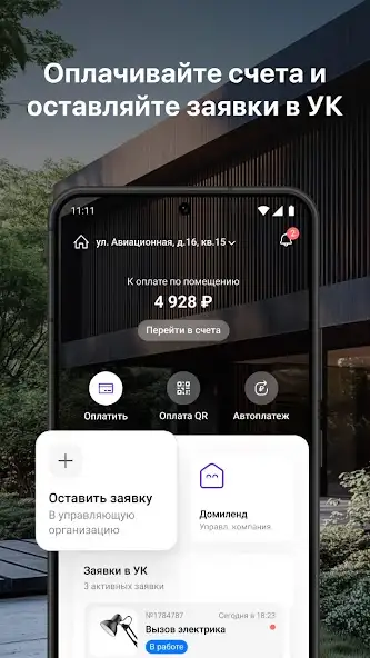 - Узнавать сумму за обслуживание квартиры. Настраивать напоминания о платежах.