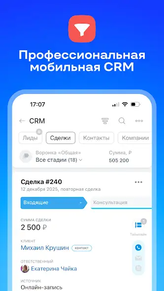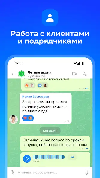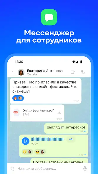- Уведомления о сообщениях, выполнении целей и времени совещаний.