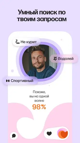 - Простому и понятному интерфейсу, который помогает искать людей быстро и точно. Ищите по полу, возрасту, цели знакомства или городу. Или не ставьте фильтров и доверьтесь судьбе. Вдруг она сведет вас с нужным человеком?