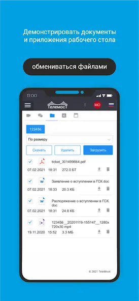 - Показ, просмотр роликов, изображений, презентаций и других файлов во время видеоконференций.
