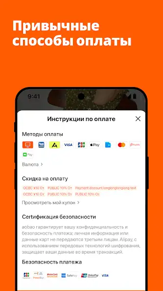 - Большое количество способов оплаты собственного заказа, например, Alipay, кредитные, дебетовые карты и так далее.