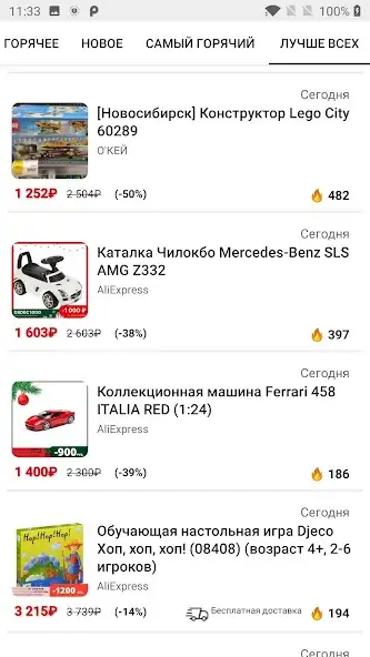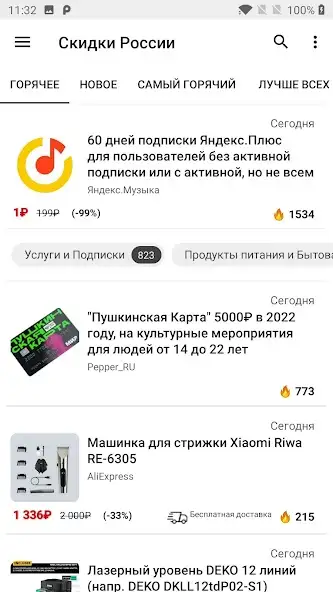 «Wildberries, М.Видео» — каталог купонов, розничных скидок для ознакомления со специальными ценами от супермаркетов, интернет-магазинов, маркетплейсов, торговых сетей бытовой техники, косметики и других. Есть уведомления о новых сделках. Присутствуют компании: «Светофор», «Эльдорадо», «Дикси», «Спортмастер», METRO, «Ашан», «Л'Этуаль», «Пятерочка», Lamoda и прочие. Доступны торговые агрегаторы, например: Ozon, «Яндекс.Маркет». Есть реклама.