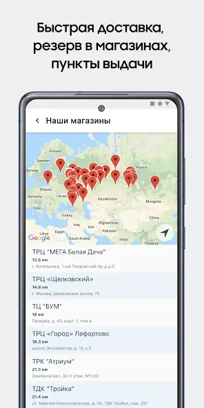 Возможно делиться контентом с друзьями через Сеть, оформлять доставку на дом к установленному времени, отслеживать статус оформленных заказов, видеть наличие продукции в торговых точках, скачивать инструкции по использованию устройств. Доступна программа лояльности, позволяющая копить баллы на бонусной карте. Возможно добавлять контент в избранное и читать обзоры новинок.
