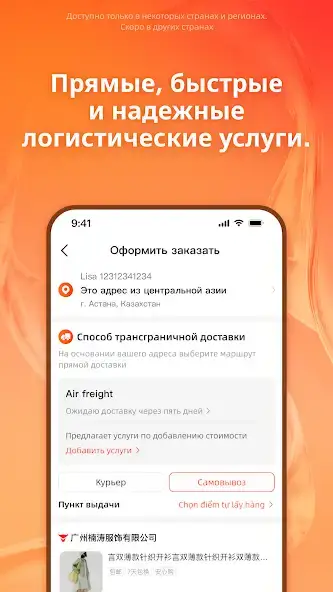 В приложении 1688 доступно приобретение товаров по предварительному заказу. Присутствуют вкладки: «Корзина», «Сообщения», «Я». Есть заказ логистических услуг, самовывоз, топ продаж, образцы, поиск по названию или фотографии. Можно приглашать пользователей, чтобы получать награды, например, пакет ваучеров. Присутствует статистика вознаграждений. Имеется светлая тема, русскоязычный интерфейс.