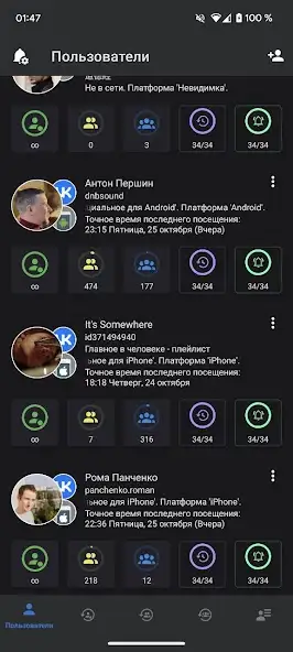 - Настройку отправляемых уведомлений индивидуально для каждого отслеживаемого юзера.