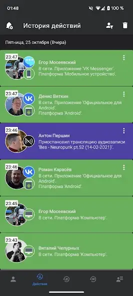 Приложение Наблюдатель ВКонтакте для Андроид имеет: