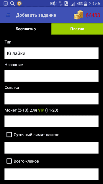 Монетами, заработанными в программе Подписчики в Инстаграм*, можно распорядиться по собственному усмотрению. Проверив баланс и убедившись в достаточном количестве накопленных средств, можно приступить к составлению собственных задач.