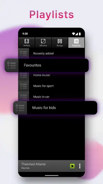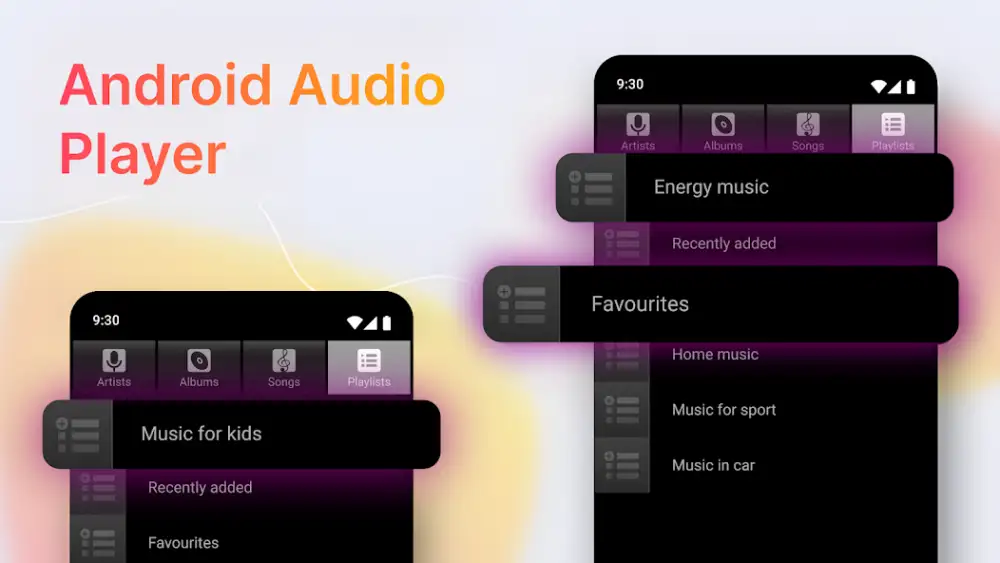 «Музыкальный плеер» предназначен для прослушивания аудиофайлов. Поддерживает потоковую передачу медиафайлов, совместим с гарнитурой USB-C. Присутствуют обложки сборников, встроенный поиск, виджет, таймер сна, фоновый режим с возможностью управления из области уведомлений. Есть реклама.
