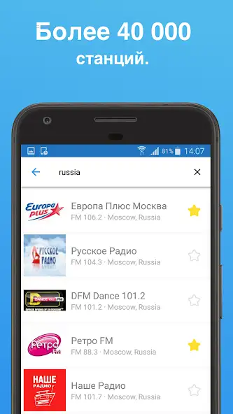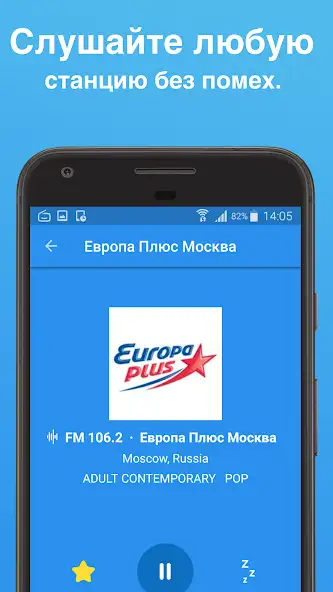 «Простое радио» предназначено для прослушивания FM-, AM- и онлайн-станций на девайсе. Присутствуют более 50000 музыкальных, новостных, спортивных и прочих радиостанций, например «Европа Плюс Москва», Radio Monte Carlo, «Вести ФМ». Имеются рекомендации, таймер сна, встроенный поиск по жанру, формату, стране, штату или городу. Авторизация не требуется. Можно добавлять контент в избранное. Буферизация не используется. Воспроизведение возможно приостанавливать. Есть реклама и покупки в программе.