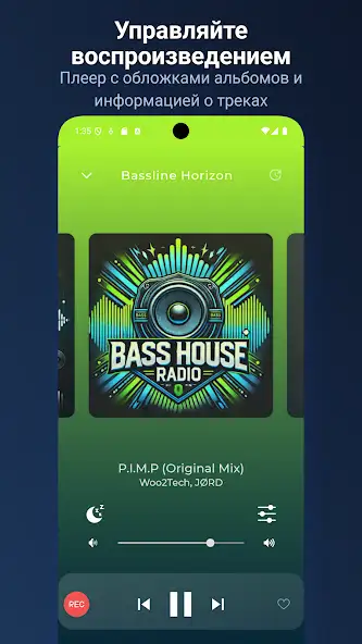 В приложении Deep House Radio есть светлая и темная темы. Можно составлять список избранных станций радиовещания, искать их по названию, жанру. Присутствует встроенный плеер с функциями паузы, проигрывания, навигации вперед-назад и регулирования громкости. Имеется интерфейс на русском языке. Есть список популярных радиостанций, «Библиотека». Программа работает в фоновом режиме, сохраняет историю.