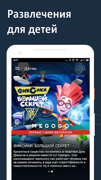 - Детям. Категория для детей включает каталоги с полнометражными картинами, мультсериалами и другими эксклюзивными предложениями.