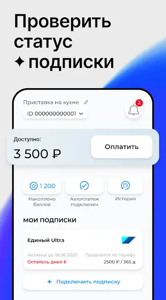 С приложением Триколор ТВ абоненты получают возможность просматривать информацию о модуле цифрового телевидения прямо с экрана Андроид. В личном кабинете доступно распределение баланса, управление опциями. На персональной странице в режиме реального времени можно просматривать информацию о статусе договора, тарифе сформированной абонентской линии.
