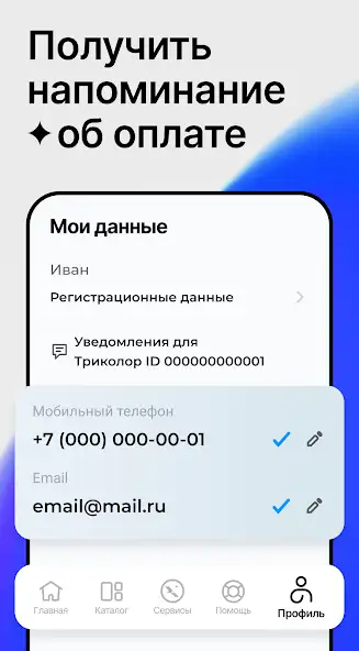 Триколор ТВ — приложение для входа в личный раздел абонента спутникового телевидения на Андроид. В кабинете пользователю открываются сведения об актуальном тарифе, балансе счета, номерах ID и договора. Через персональную страницу абонент спутникового оператора может назначать повторы команд активации, управлять услугами, распределять средства.