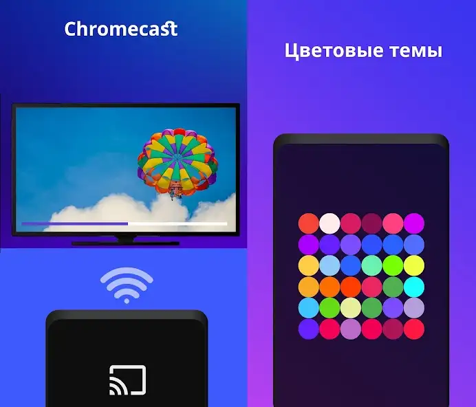 Поддерживается воспроизведение видеороликов в разрешениях 720p, 2160p. Приложение «Видеоплеер со всеми форматами» содержит рекламу. Можно создавать плейлисты, делиться контентом с другими пользователями, регулировать скорость проигрывания. Есть таймер, ночной режим, файловый менеджер. Имеются: интерфейс на русском языке, редактор с функциями обрезки, конвертации роликов в файлы MP3.