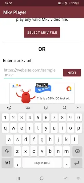 Интерфейс на русском языке отсутствует. Приложение MKV Video Player & Converter содержит рекламу. Имеется светлая тема. Есть всплывающая клавиатура. Поддерживаются горизонтальная и вертикальная ориентации экрана. Можно регулировать уровень громкости. Присутствует показ продолжительности видеороликов и прогресса просмотра.