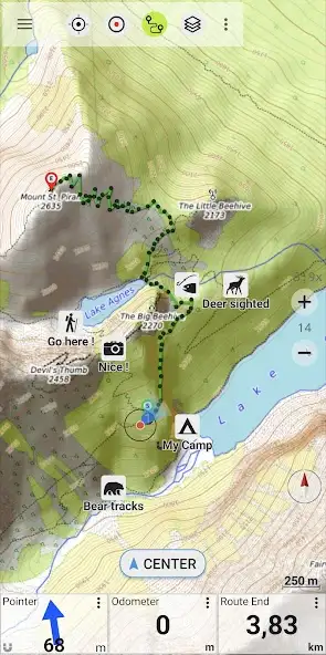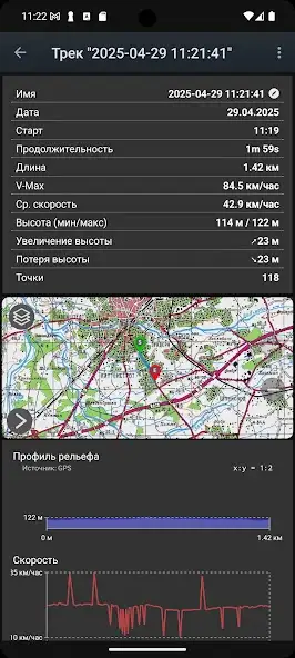 - Запись трека. Включение функции позволяет сохранить историю передвижений в памяти телефона. Записываются маршруты со всеми контрольными точками.