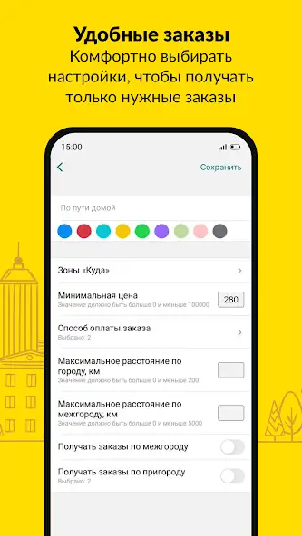 - Автоматическая настройка и прибавка стоимости к поездке в зависимости от территориальных зон благодаря встроенному таксометру. Например, на загородном выезде определится маршрут и увеличится цена.