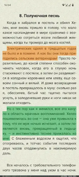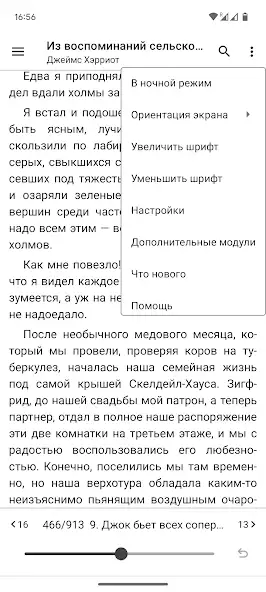 - настройка шрифта, цвета, обоев, способа листания страниц, раздела с книгами, полосы прокрутки и многое другое;
