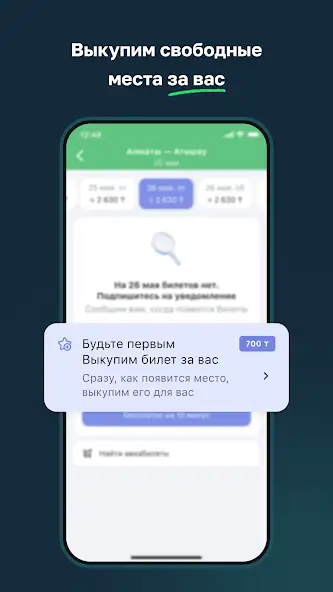 - Настройка push-уведомлений о появлении билетов на необходимую пользователю дату.
