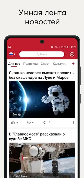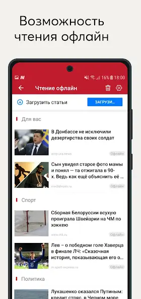 - Добавление новостей в «Избранное» для повторного прочтения в будущем.