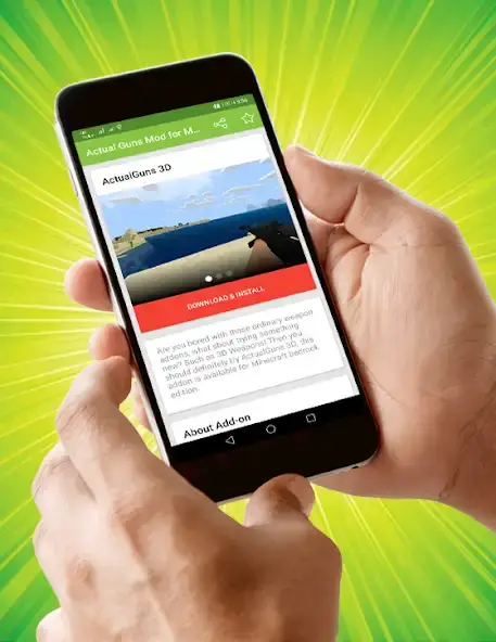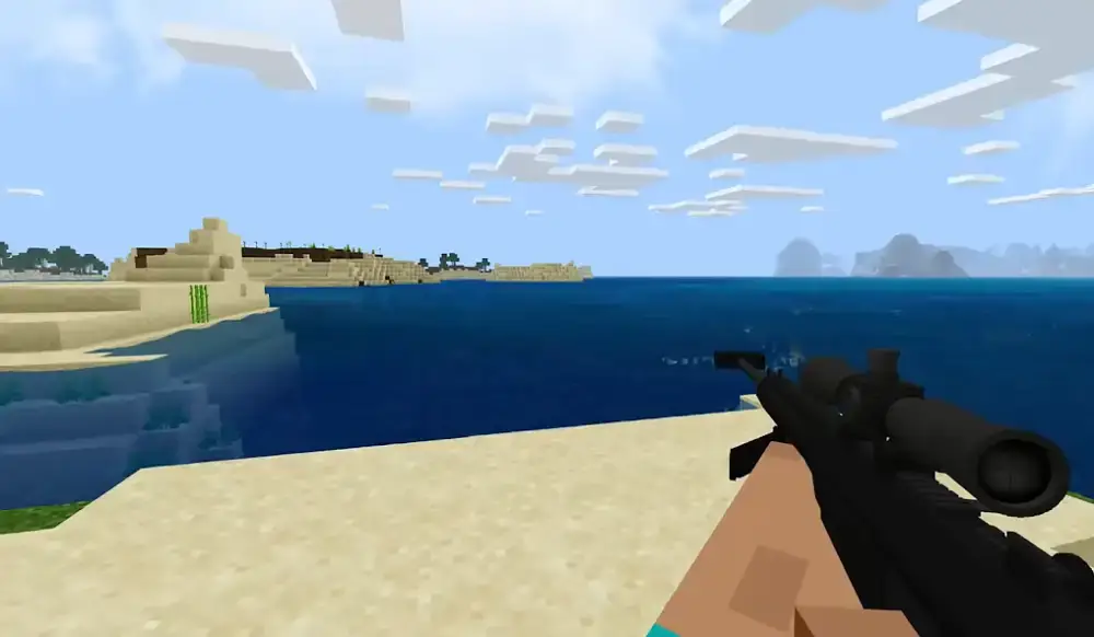 Actual Guns Mod for MCPE — мод для пополнения вооружения в Minecraft. Добавляет реалистичное 3D-оружие, например: снайперские винтовки AWP, пулеметы M249, дробовики M3, гранаты, прочее. Имеется описание приложения и скриншоты. Характеризуется графикой в кубическом стиле. Для работы потребуется открыть песочницу, зайти в раздел с набором ресурсов и параметров, где нужно включить аддон. Присутствует анимация перезарядки, прицел. Есть реклама. Возможно прицеливаться и стрелять через реку.