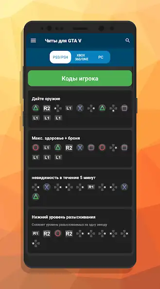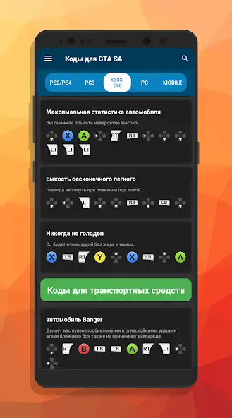 «Читы для всех GTA» — каталог кодов, которые открывают скрытые функции в одноименном экшене с элементами приключения, гонки и шутера. Присутствует функция поиска по ключевым словам. Есть офлайн-режим. Позиции объединены на группы согласно предназначению, к примеру: для транспортных средств, погоды, игрока. Можно переключаться между страницами, выбирать версию приключенческого экшена. Коды подходят для выпусков игры Grand Theft Auto: Liberty City Stories, Chinatown Wars и прочих.