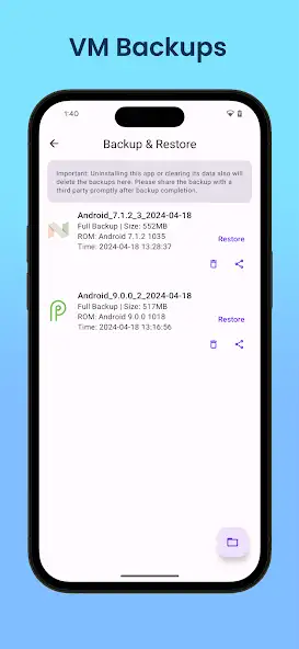Для работы нужно сохранить образ системы. Поддерживает технологию «Вулкан». Отображает название, размер и другую информацию о версиях операционных систем. Присутствует предварительный просмотр, резервное копирование и восстановление данных, темная тема, встроенная поисковая строка. Возможно делиться контентом через интернет, удалять его, делать скриншоты, выбирать горизонтальную или вертикальную ориентацию экрана. Имеется реклама и русскоязычный интерфейс.