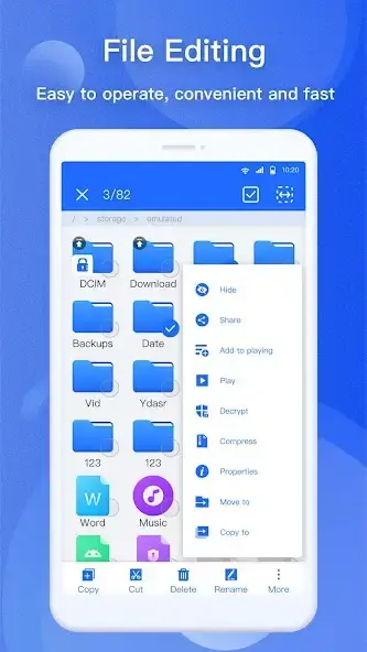 «EX файловый менеджер» предназначен для управления файлами на девайсе и в облачных хранилищах Google Drive, Dropbox, других. Поддерживает форматы EPUB, PDF, TXT, прочие. Показывает количество элементов, дает к ним доступ с ПК, сжимает и распаковывает архивы. Контент представлен в виде списка миниатюр. Присутствуют встроенный поиск, русскоязычный интерфейс, совместное использование.