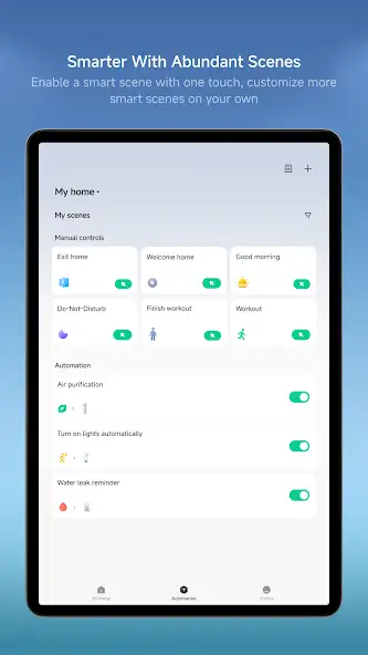 - Наличие встроенных и создание новых сценариев автоматизации гаджетов (Effective time period, Meet one condition, Add conditions, Add instructions).
