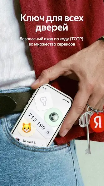 «Яндекс ключ» — аутентификатор для создания одноразовых кодов доступа, обеспечивающих вход в аккаунты сервисов, которые имеют двухфакторную авторизацию: ВКонтакте, Google, Dropbox и другие. Защищает интернет-страницы юзера от взлома, так как временный пароль приходит на пользовательское устройство, а действует 30 секунд. Генерирует шифры от 4 до 8 знаков. Позволяет открыть личный профиль человека в Яндекс-сервисах с помощью QR-кода. Может работать офлайн.