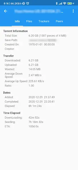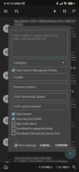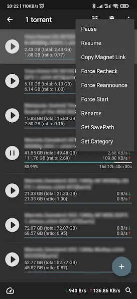 Приложение qBittorrent Remote Lite доступно в светлой и темной темах. Присутствуют функции удаления, паузы, возобновления, переименования. Программа нуждается в обновлении. Можно копировать магнитную ссылку; менять категорию, место сохранения; смотреть количество загружаемых, приостановленных, активных, завершенных, раздающихся торрентов. Имеется показ скорости сохранения и раздачи.
