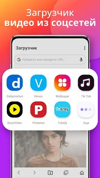 Загрузчик — диспетчер для сохранения видеороликов в HD-качестве с видеохостингов и из социальных сетей, к примеру TikTok. Присутствует функция автоматического обнаружения контента. Скачивание осуществляется по ссылке. Поддерживается технология многопоточной загрузки. Есть интерфейс на русском языке, реклама. Имеется встроенный браузер. Программа работает в фоновом режиме.