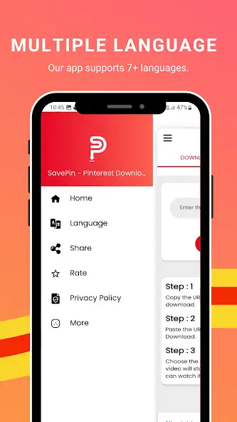 Загруженным контентом можно управлять через вкладку для скачанных файлов, где присутствует функция сортировки по формату, и смотреть его без подключения к Сети. Есть возможность делиться по интернету, репостить через Pinterest. У интерфейса более семи вариантов перевода. Имеет выпадающее меню, где можно сменить язык, ознакомиться с политикой конфиденциальности, оценить работу приложение, поделиться медиафайлами.