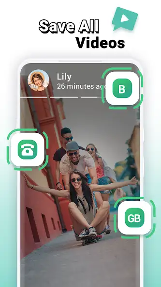 Status Saver: Video Downloader — загрузчик для скачивания видеороликов, фотографий из статусов. Имеются вкладки: «Сохранено», «Инструмент» и «Недавний». Присутствует редактор для обрезки клипов. Можно делиться статусами с другими пользователями, публиковать их в свой профиль без сохранения. Загрузки показываются как список миниатюр. Имеется встроенный видеоплеер для просмотра контента офлайн. Есть функция прямого чата без сохранения телефонных номеров в списке контактов.