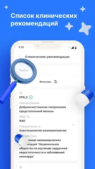 - Использовать функцию расширенного поиска по различным параметрам: названию и тексту документа, году публикации, номеру класса в МКБ-10.